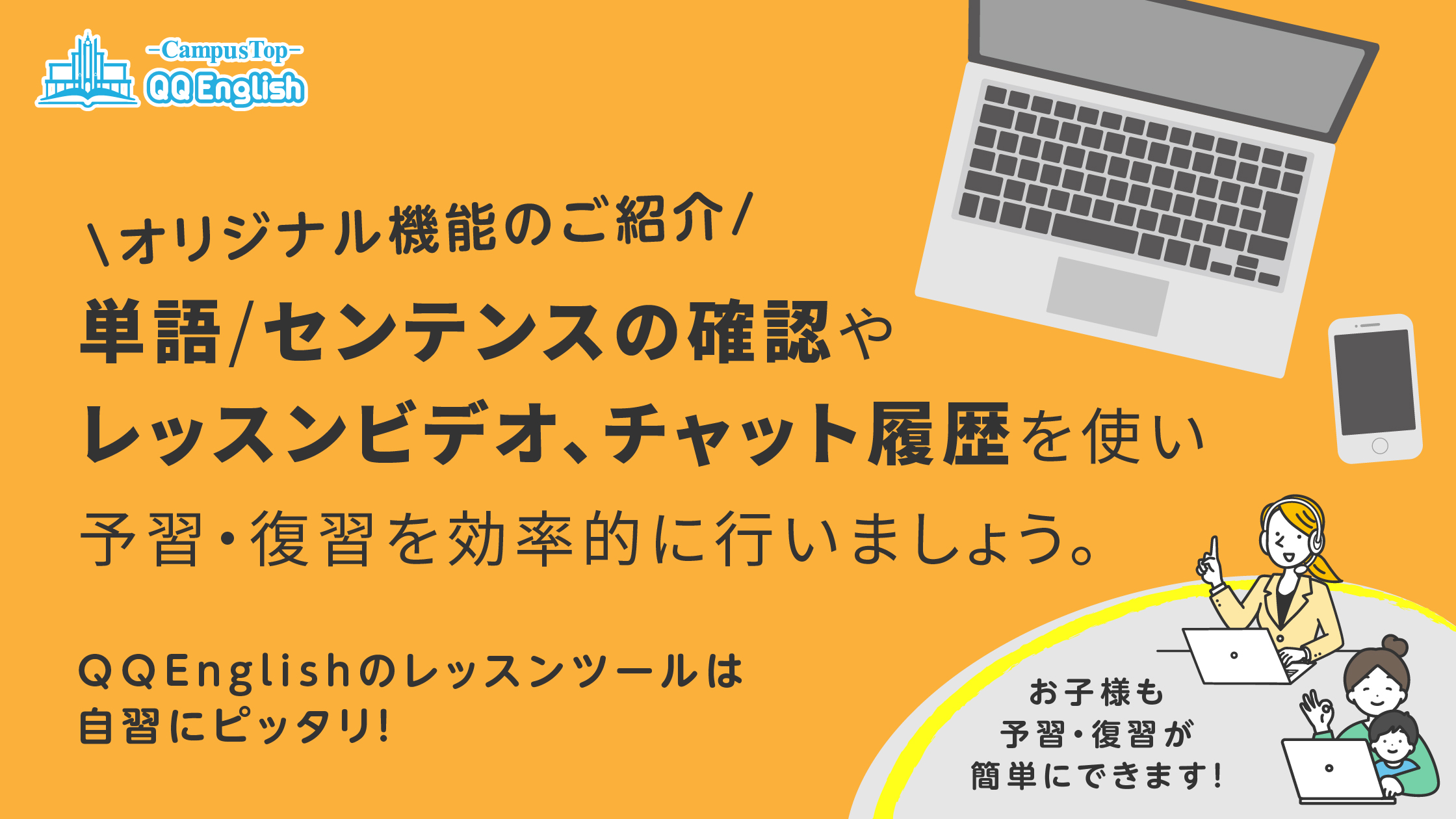 オンライン英会話レッスンで学習した内容をしっかり定着させるためには「予習・復習」が欠かせません。QQ English のレッスンツールではレッスン前の“予習機能”、レッスン後の“レッスン録画”と”チャット履歴”が残りますので、これらの機能を活用することで効率的に学習することが出来ます。