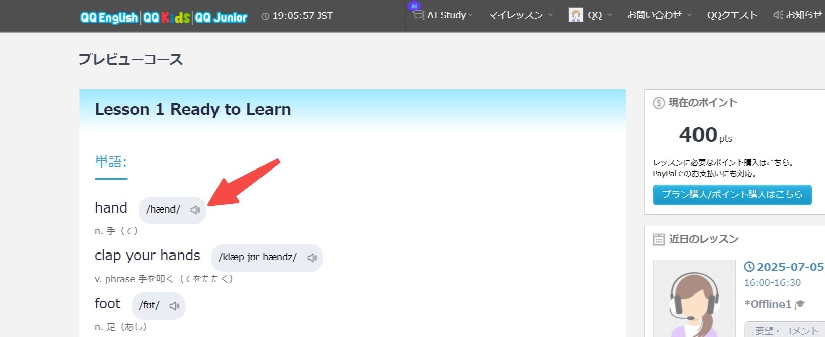 また、QQキッズをご利用のお客様におかれましては、お子様のレッスン内容を後から振り返ることが出来ます。教師との会話内容、お子様の反応を見ながら、語彙の定着やコミュニケーション状態をご確認いただき、お子様と一緒に振り返ってみてください。